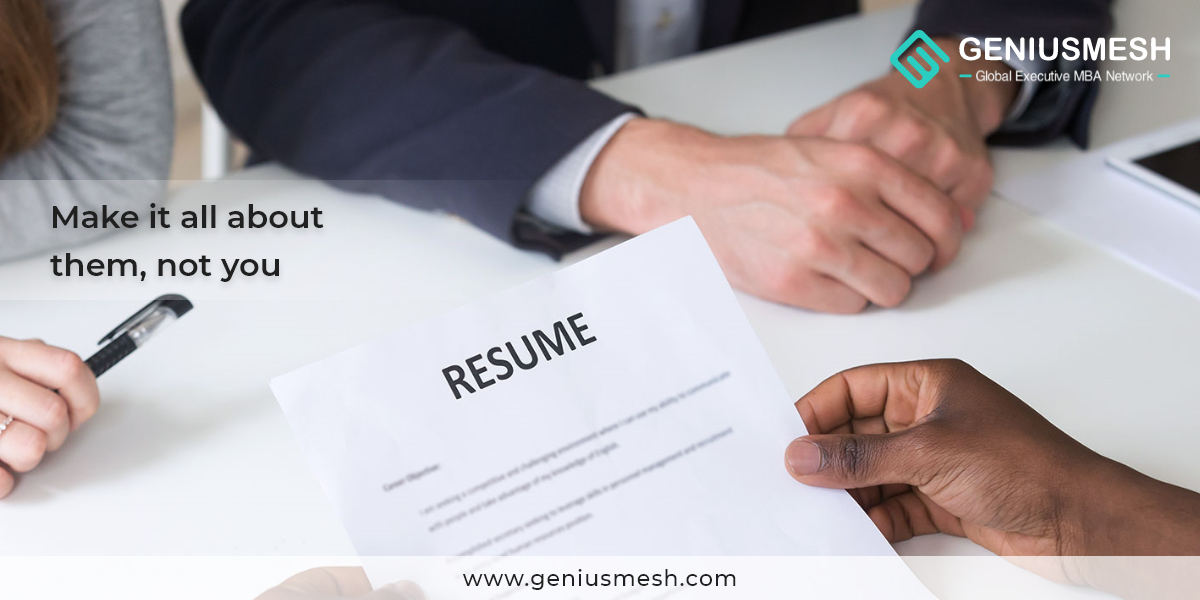 At the risk of being overly dramatic, follow the advice of President John F. Kennedy during his 1961 Inaugural Address: “…ask not what your country can do for you, ask what you can do for your country.” Follow this sound advice in the preparation of your resume – make it about them, not you.